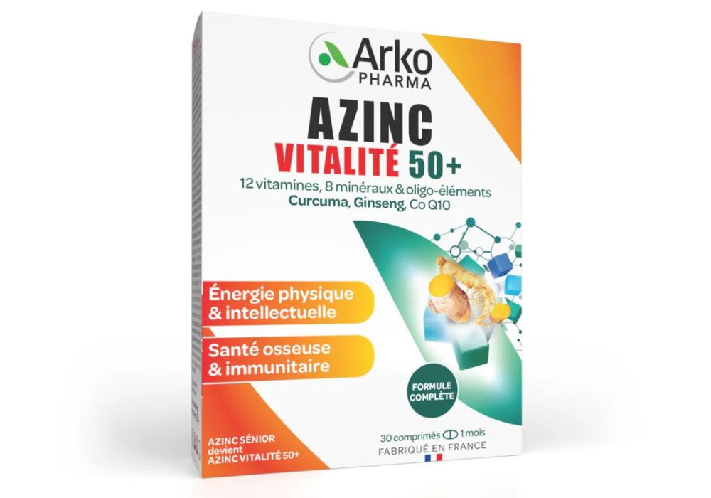Le laboratoire Arkopharma a développé AZINC® Vitalité 50+, une formule complète spécialement conçue pour répondre aux besoins des 55 ans et plus.